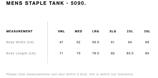 Construction Sleeveless tank, hemmed armhole edges, neck ribbing, side seamed, shoulder to shoulder tape, double needle hems, preshrunk to minimise shrinkage